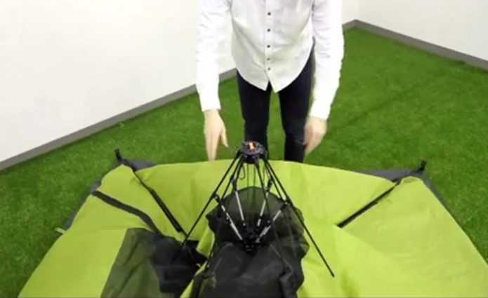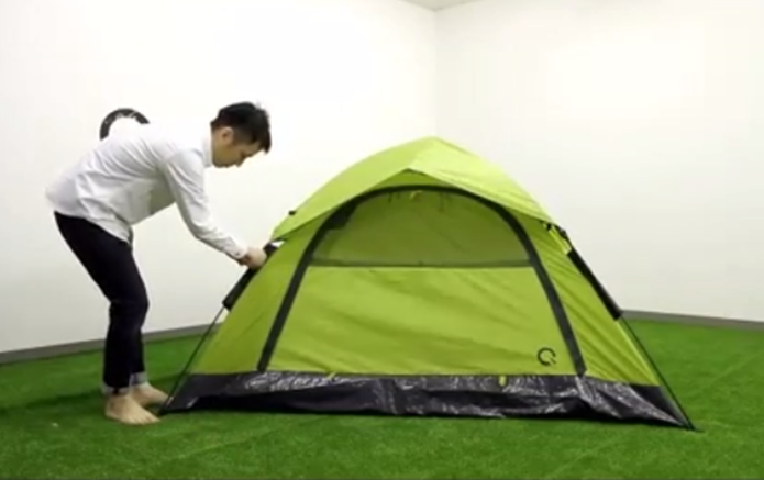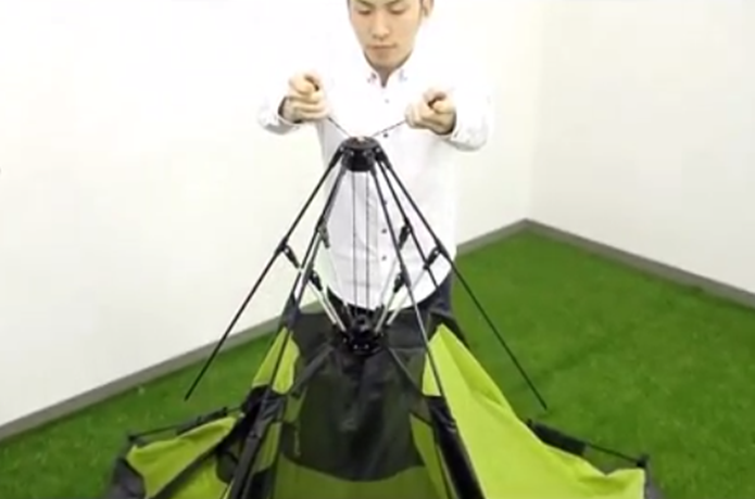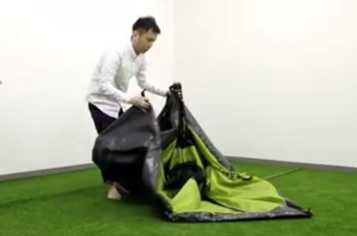 面倒な設営を極力スムーズにしたいなら、このワンタッチテントがオススメ! 骨組みと生地張りが一体化していて、テントを広げてロープを引くだけで設営完了。その時間、なんとわずか15秒という速さです。