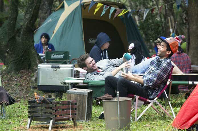 - みんなで火を囲んで集まれる
