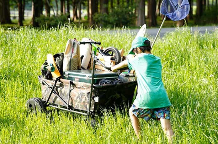安定感のあるアウトドアワゴンの耐荷重量は100kg。「小さな子供でも載せられるのか?」と気になっている方はいらっしゃいませんか。耐荷重量でみると、載せることは十分に可能です。