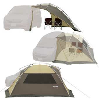 ●カーサイドへの取り付けや、タープ単体での使用も可能なハイブリッドモデル