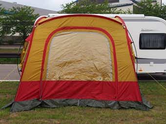一風変わった扇形の形状は車体のサイドから後方までをカバーし、広いリビングスペースを作り出すのが特徴。別売りのサイドウォールを合わせて使うとプライベート空間を生み出せるのもポイントです。