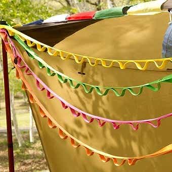 キャプテンスタッグ「カラビナ付ループロープ(メキシカン)」は、キャンプサイトをかわいく機能的にデコレーションできるハンギングチェーン。メキシカン柄の鮮やかなデザインが特徴的で、キャンプサイトに明るく彩ってくれます。全長210cmとしっかり長さを確保でき、シェラカップやランタンなどさまざまな小物を吊るせる点が魅力です。