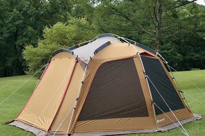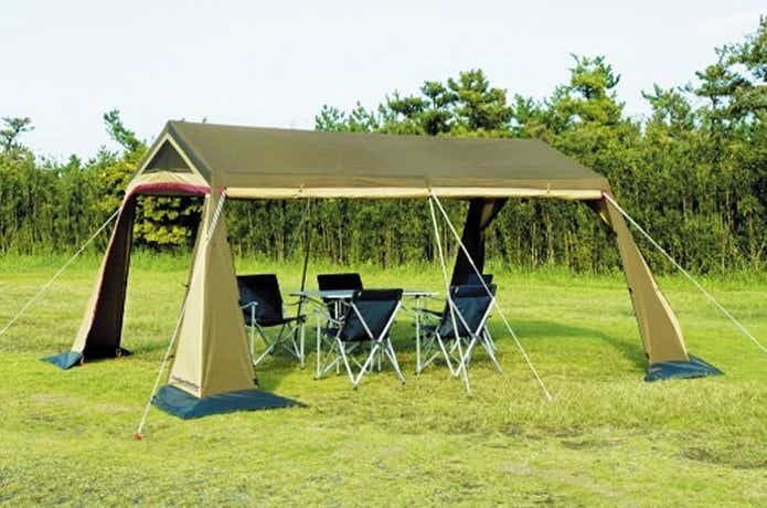 とは、側面にも生地のあるタープのこと。一般的なタープと比べて虫が侵入しにくく、プライベート空間を確保しやすい形状です。
