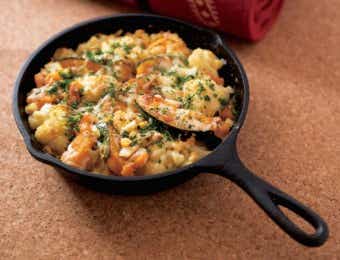 ダッチオーブンは食材の旨味を引き出せることが最大の魅力! 遠赤外線効果で表面を素早く焼き上げつつ中はじっくり均一に火が入ることで旨味が凝縮され、フワッと美味しく仕上がります。