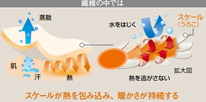 ●熱反射テクノロジー「オムニヒートインフィニティ」が体温を効率よく反射し、薄手でもしっかり暖かい