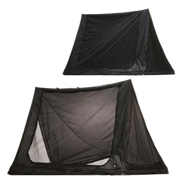 フライ部分とは別で、本体にドア&メッシュパネルを備えるので、急な雨や就寝時でもいちいちキャノピーを下ろさずに済む構造も便利。