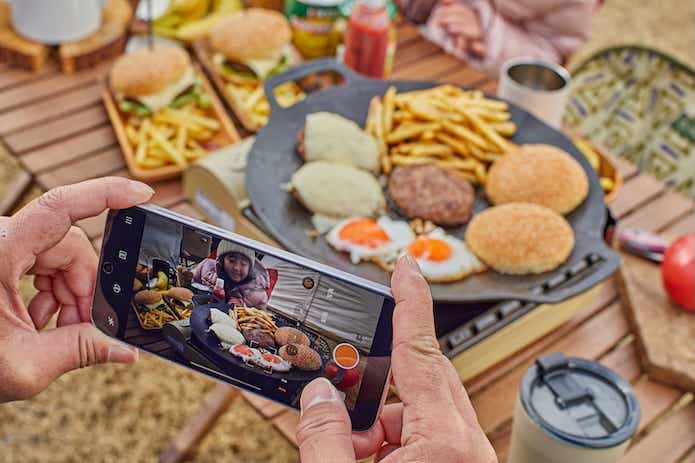 まずはキャンパーなら1度は撮るであろう、映え飯に挑戦。「OPPO Find X8」のカメラはマクロ撮影にも対応しているため、料理に近づいてもしっかりピントを合わせてくれます。