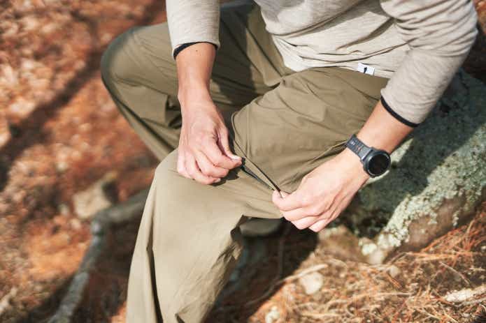 膝部分にファスナーが仕込まれていて、ショーツ⇆ロングパンツへの切り替えがスムーズに可能に。