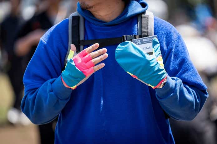 なんでもトレイルランニング用に開発されたものだそうですが、ミトンとフィンガーレスの2WAYで使えます