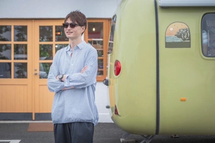 TAKE:僕が選んだ「006」は、定番のボストンフレーム。ブラウンマットにブラウンのレンズなので、コーディネートを選ばない万能な組み合わせです。Tシャツはもちろん、シャツに合わせてもしっくりはまるので使い勝手がいいですね。