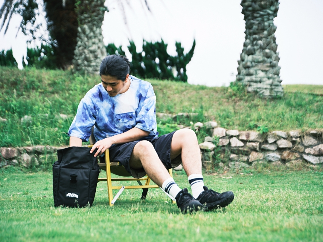 表地は滑らかな高密度リップストップナイロン、裏地には蒸れを防ぐメッシュ素材を採用。6色のカラー展開がありますが、なかでも夏っぽさを感じさせる「スカイタイダイ」は要チェック。