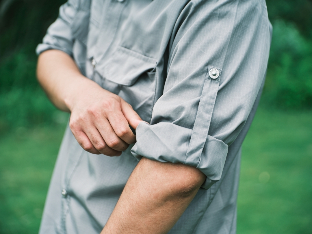 「夏に長袖は暑いよ!」と思われた方もいますよね? こちらのシャツには袖をロールアップしてストラップで留められるギミックが備わっているんです。