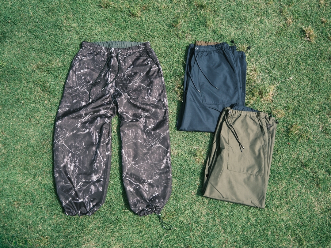 アノラックパーカーと対になるリバーシブル仕様のボトムス「ノンダウン ミリタリー リバーシブル ワイドパンツ」もラインナップ。