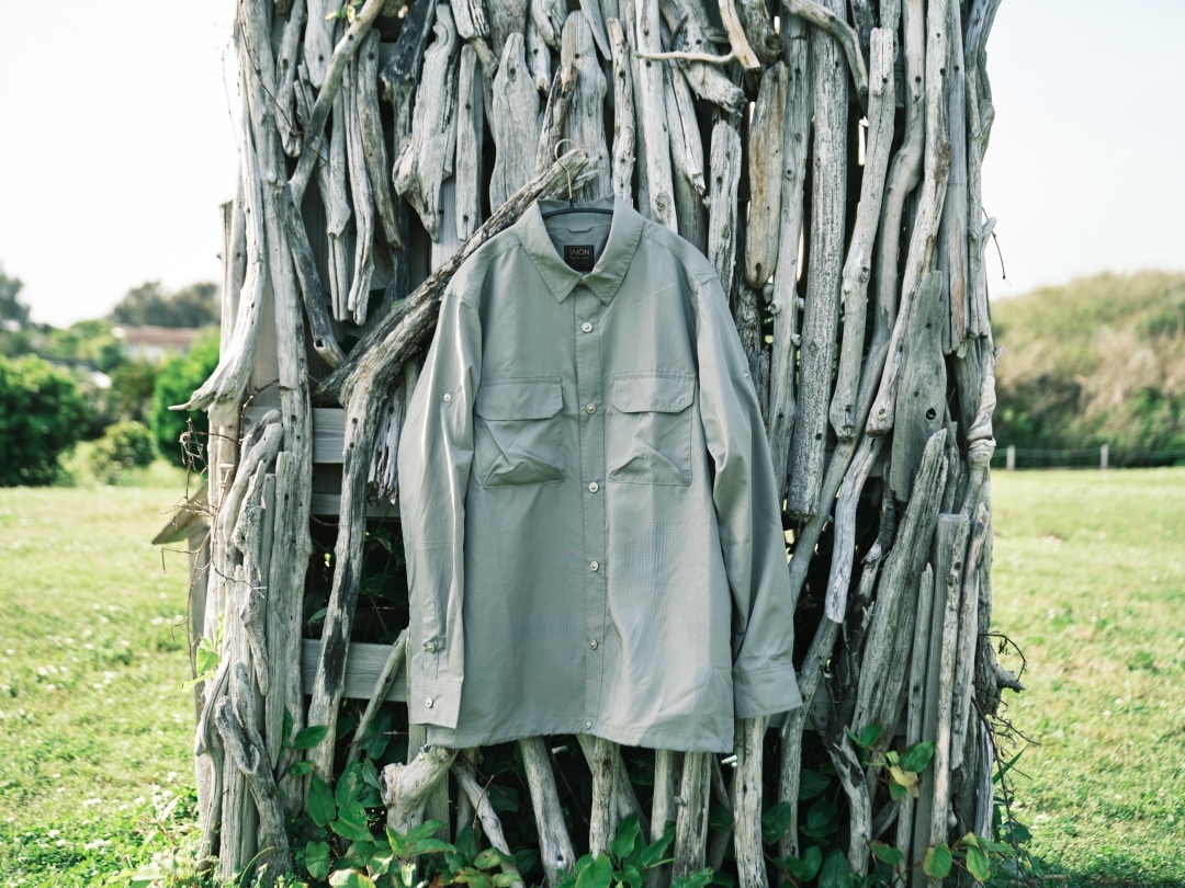 アウター以外にも、さらっと羽織れるシャツもラインナップ。こちらの「ノンダウン ミリタリー ロングスリーブシャツ」は、軽い着心地とタフなリップストップ生地で、夏の体温調整にぴったりの1枚。