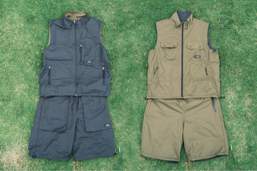 次に紹介するのは、セットアップでも楽しめる「ノンダウン マウンテン リバーシブル Wジップ ベスト」と「ノンダウン マウンテン リバーシブル ショーツ」。