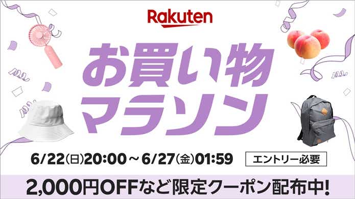 2025年6月22日(日)~6月27日(金)までお買い物マラソンが開催。期間中は、条件によってお得なポイント還元キャンペーンが実施されます!