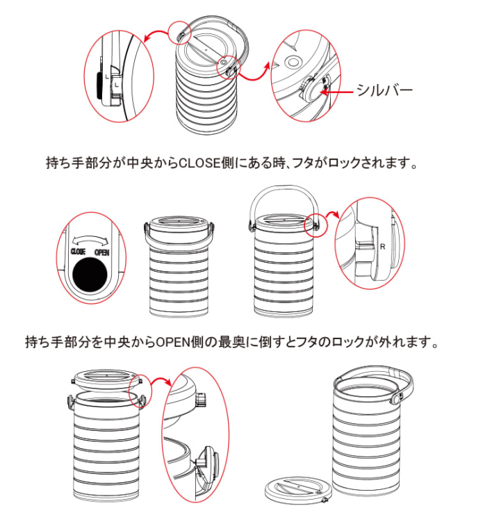 ハンドルでロックする構造ゆえに、落下などでハンドルを壊してしまうとフタをロックできなくなるので、その点は注意が必要です。