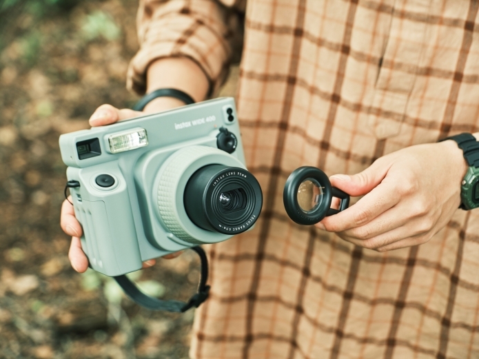 「instax WIDE 400™」に付属する接写レンズを取り付ければ、近くにあるものや、小さな被写体の撮影も楽しめます。キャンプ飯や、お気に入りのギア、虫や植物などの撮影に最適!