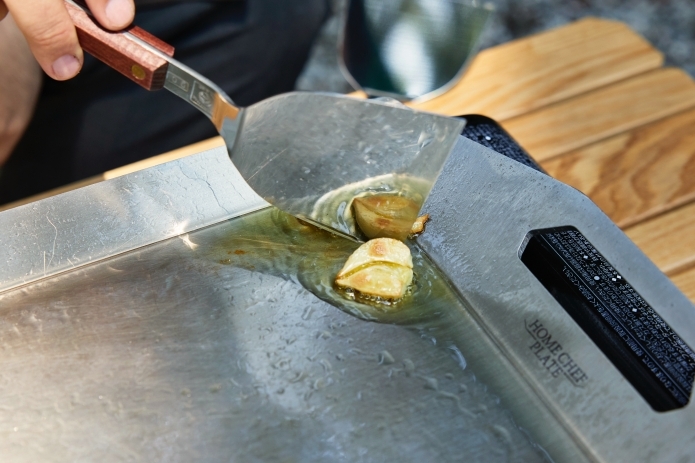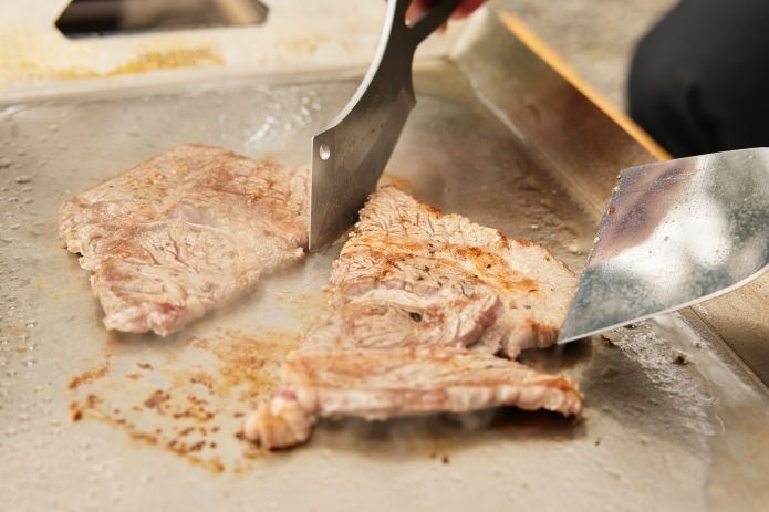 気分は鉄板焼き屋。プレート上で刃物が使える