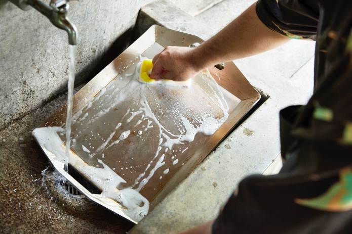 テフロンコーティングがされたプレートのように、「軽い力でこするだけ」とはいかないものの、中性洗剤とスポンジで十分落とすことができました。なにより鉄製のプレートと異なり、洗剤で洗えるのは大きな魅力です。