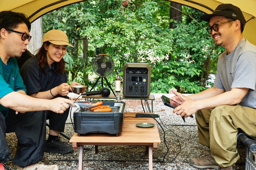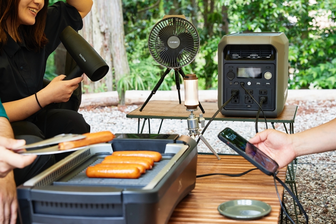 定番のポータブル扇風機や、アイスクリームをとかさずに持ち込めるポータブル冷蔵庫、電動のかき氷マシンなどを繋いで、夏キャンプを涼しく快適に楽しむなんてことも可能。