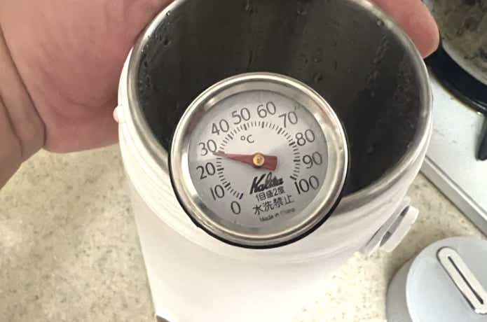 が、 なんということでしょう……。7時間後の翌朝、お湯の温度を測定した結果は、まさかの30℃。