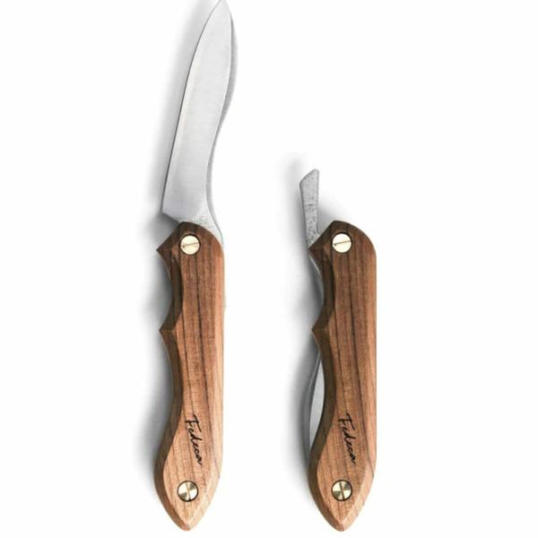 携帯性に優れた折り畳み式ながら、展開するとやや刃が斜めに飛び出した形に。この独特な形状は包丁の使い勝手を再現されており、キャンプ初心者用として開発されたエントリー用ナイフ。衛生面も考慮されて柄の分解も可能。オシャレな見た目に、初心者だけに渡すのはもったいないと大人気な料理ナイフ です。