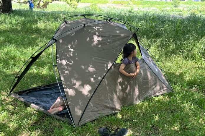 • ソロテントのような構造だから、公園とかでパッと使いたいときには組み立てが面倒。メッシュ機能がなく虫が気になるときがある