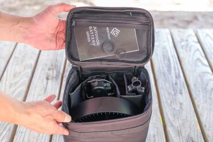 付属品三脚、三脚固定ねじ、ネストアウト アウトドアバッテリー接続パーツ、ポールクランプ、バッグ、取扱説明書