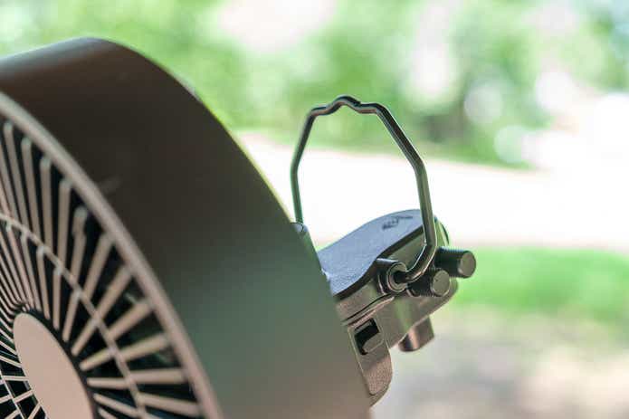 本体のメカ部分にある取っ手も、サイト内での設置に役立つでしょう。ランタンハンガーにそのまま、あるいはカラビナでガイロープの途中に吊り下げることができそうですね。