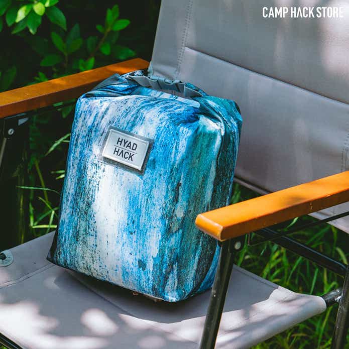 今回もCAMP HACKオリジナルテキスタイル、樹皮をモチーフとした「BLUE BARK」柄を採用し、ちょっと他とは差のつくデザインも魅力です。