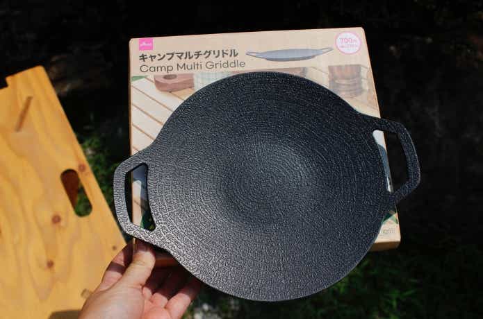 そんななかダイソーからも「キャンプマルチグリドル」という商品が……! 発売されたのは、770円の20cmと、1100円の25cm。ソロ〜デュオ向きのサイズ感です。