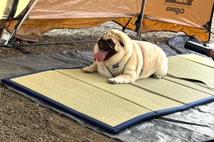 よほど寒い時期はともかく、底冷えのない季節なら十分これだけで眠れそうですし、コットのように高さがないので、ワンコと一緒に寝るのにも最適ですね。