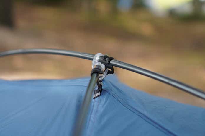 居住性以外の部分で感じたのは、ポールの強度が高いこと。ヘリノックスチェアなどでおなじみの超軽量かつ高強度なDAC社のFeatherlite NSL Φ8.5mmということですが、同価格帯で同じようなサイズ感のドームテントのポールに比べると、非常に質の良さを感じました。