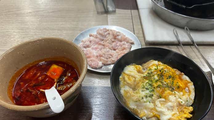 おすすめは、辛スープとホルモンを注文して、焼いたホルモンをオリジナルのタレにたっぷり浸けて目丼にバウンドさせて食うこと。どろっとした秘伝のタレも最高にうまいんです。