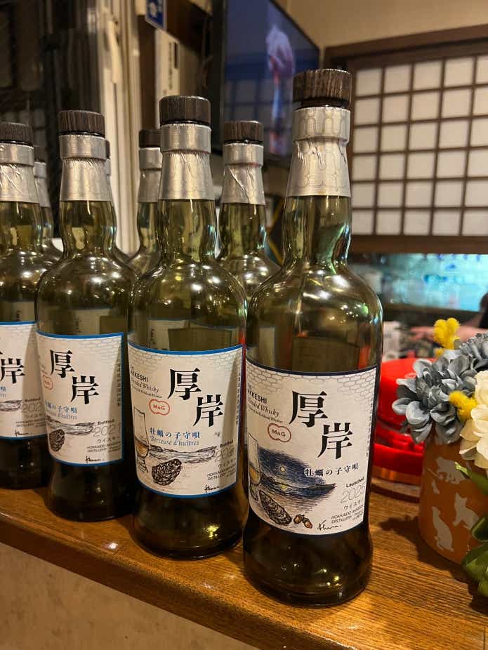 ジャパニーズウイスキーでなかなか世の中に出回らない厚岸のウイスキー「厚岸」という銘柄があるのですが、なんと厚岸市内の飲食店にだけ流通するリーズナブルな銘柄「牡蠣の子守唄」というものが存在するんです。