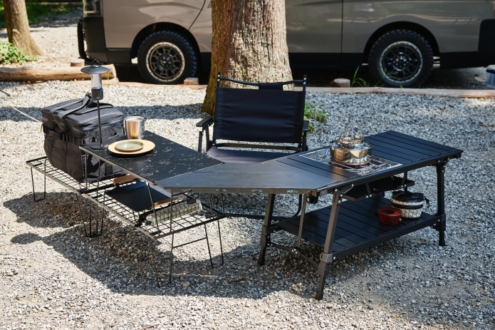 勢いが止まらない「アルミユニットテーブル」ですが、すでに発売済みのオプションアイテムもたくさんあるんです。持っていると便利そうな、拡張アイテムを厳選して4つ紹介していきます。