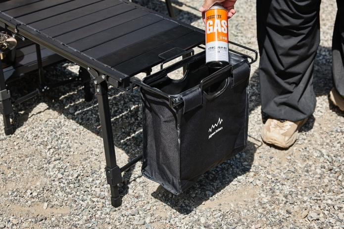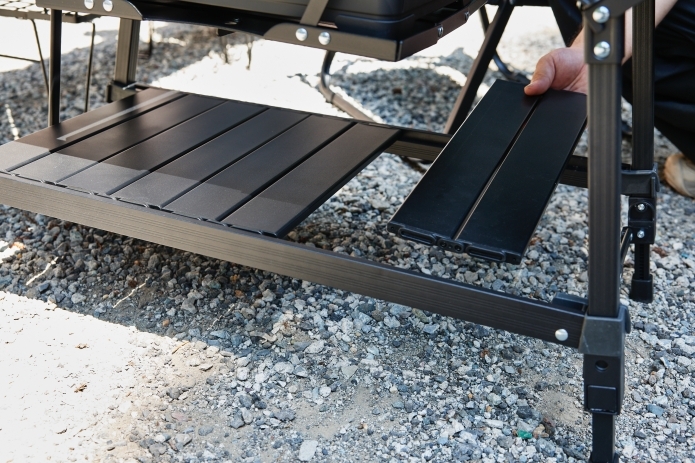 調味料や食材、クッカーなどをこの拡張した下段に置くことで、テーブル上が広く使えるので、作業性がアップし、ゴチャ付きも解消できます。