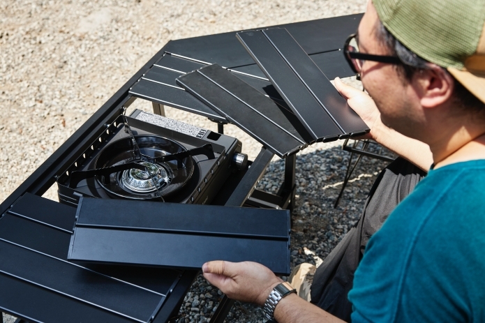 バーナーとの組み合わせで余った天板や、別売の追加天板をセットすれば、テーブルを横に長くできます。