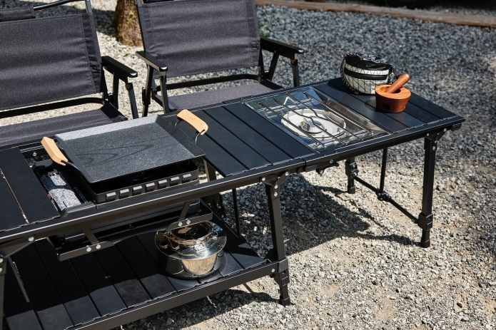 フレームが延長されたことで、テーブル単体ではできなかった、バーナー2台の組み込みも可能に。気分はまるでDJ!?