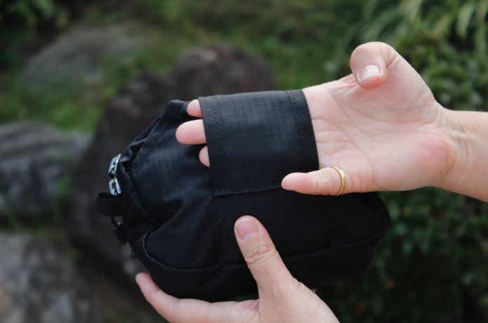 ちなみに、モンベルには似たようなサイズ感で縦長デザインの「アタッチャブルポーチ」もあるんですが、個人的には横長の方が足上げしやすく、荷物の出し入れもしやすいので、ベルトポーチを選びました。