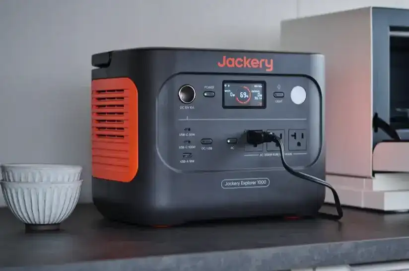 容量は1,070Wh、定格は1,500Wと家庭用のコンセントと同等な「Jackery ポータブル電源 1000 New」。約10.8kgと持ち出しやすい重さなのも特徴です。