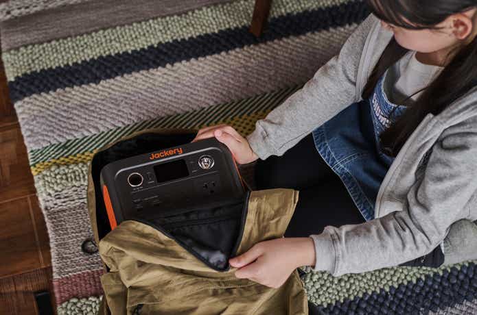 容量256Wh、定格300W、重量わずか3.6kgで、Jackeryの中でも小型のモデル。リュックに入れて持ち運べるサイズで、徒歩やバイク移動のキャンパーでも気軽に運べます。防災時の持ち出しにも便利。