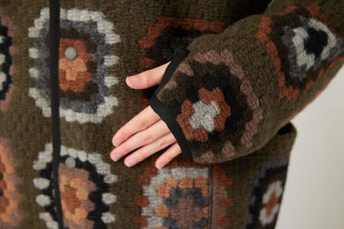イタリアのカラマイ社製オリジナルニットを使用したジャカード織の温かみある柄表現と、GORE-TEX素材による防水透湿性を両立した全天候型ダウン。