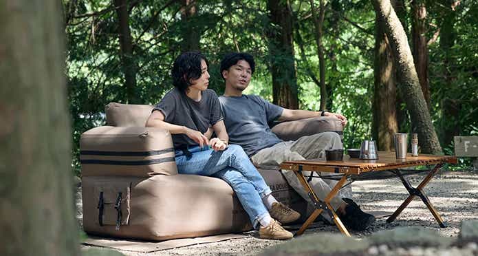 キャンプサイトを、まるで家のリビングのような快適空間にできちゃうエアソファ。チェアがあればキャンプはできちゃうし、気になっているけれど、なかなか手が出しづらかった人は要チェックですよ!