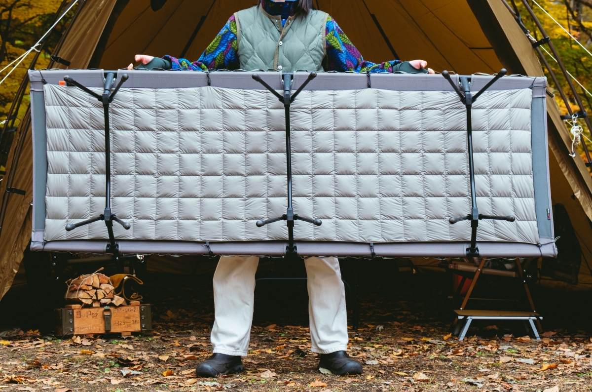 コット裏に装着して、下からの冷気をシャットダウンできる「ワイドダウンブランケット」です。他にもいろいろな使い方ができる、1枚6役の便利な保温アイテムになっています。数量限定ですので、この機会をお見逃しなく!
