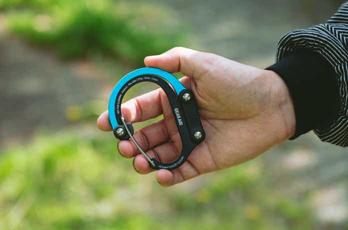 続いて紹介するのは、旅行であると地味に嬉しいアイテム「ヒーロークリップ」です。一見よくあるカラビナですが、このカラビナのギミックが旅行で役立ちます。