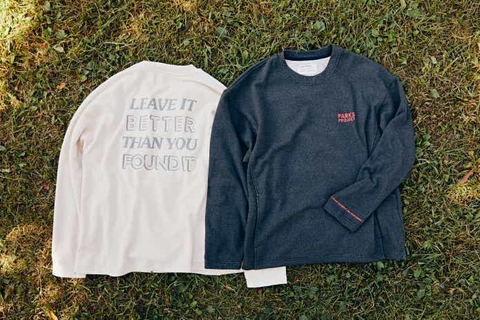 「今日は寒い? 暑い?」と迷う季節の強い味方が、PARKS PROJECTの「Leave It Better Sweatshirt(CAMP HACK別注)」。
