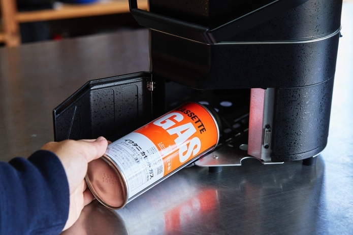 「PROGOHAN」の燃料は、スーパーやコンビニ、キャンプ場の売店などで入手しやすい、イワタニのCB缶(カセットボンベ缶)。電源がなくても、CB缶と乾電池をセットするだけで使えるので、キャンプだけでなく防災など幅広いシーンで活躍します。