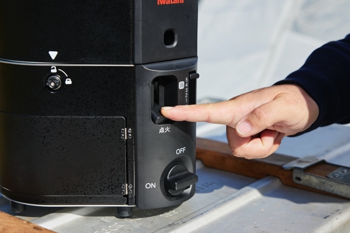 吸水が完了したら、炊く米の量に合わせてレバーを操作。今回は5合入れたので「5」の目盛りに設定し、点火スイッチを入れます。